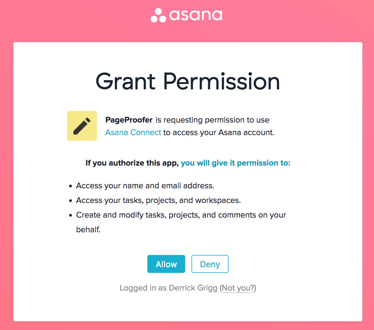 Allow PageProofer to access your Asana account