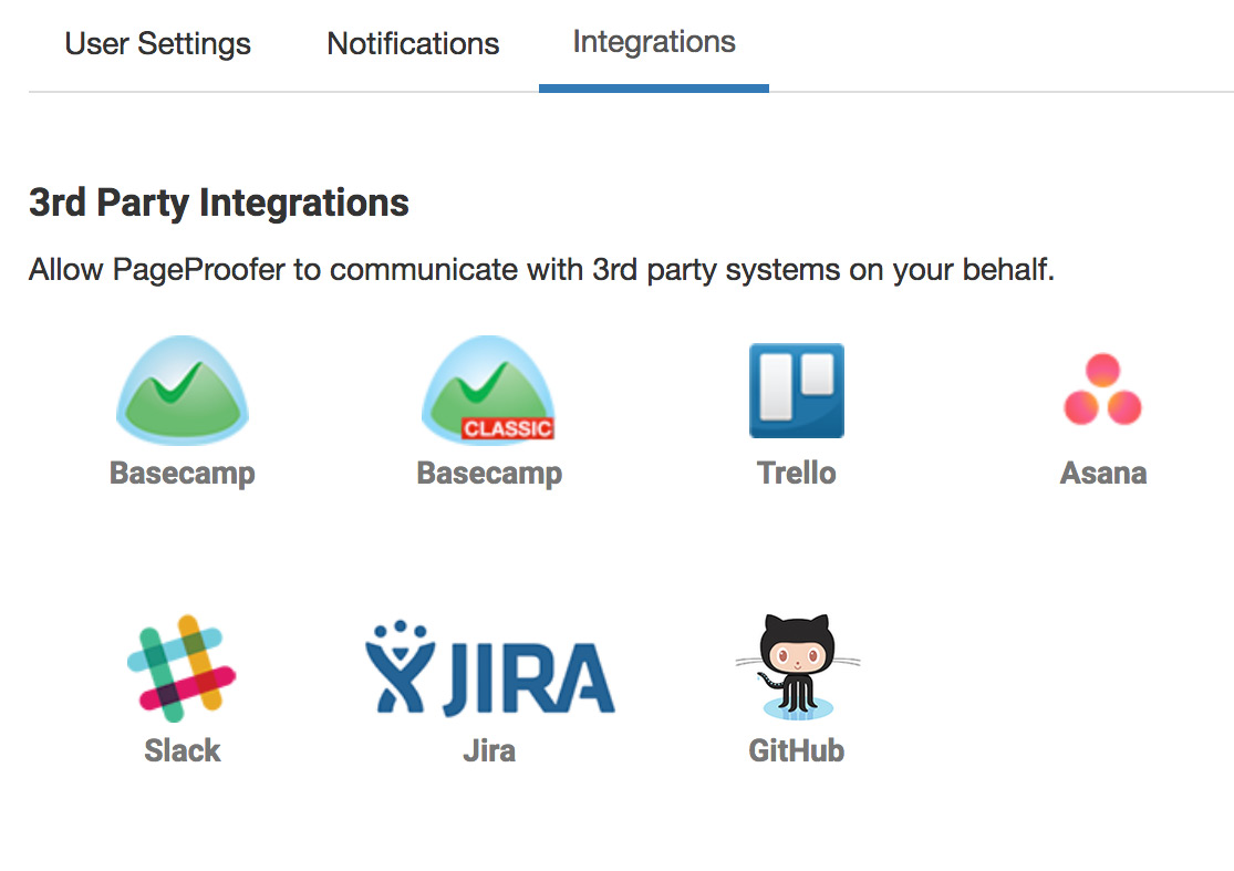 Go to the ‘Site Settings’ screen in PageProofer, click the ‘Integration’ tab and then click the Asana link.