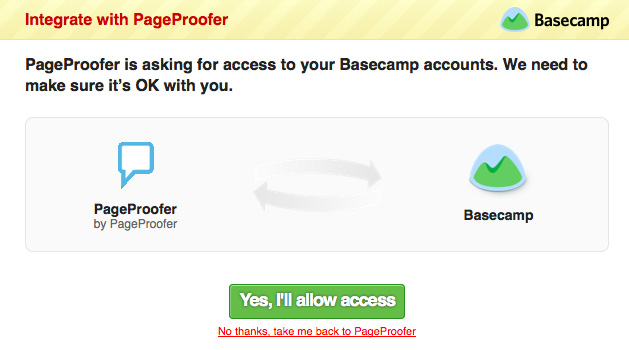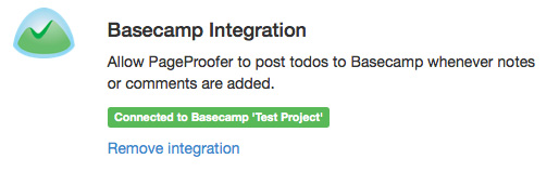 If your team uses Basecamp for project management you can easily connect PageProofer to your Basecamp project. As notes and comments are added in PageProofer, todos will be added and updated in Basecamp with links back to the specific page and note where the PageProofer note was added.