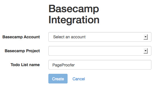 Select the Basecamp account and project you want connected to your PageProofer site and then enter a name for the Todo list that will be added in Basecamp to store the PageProofer notes