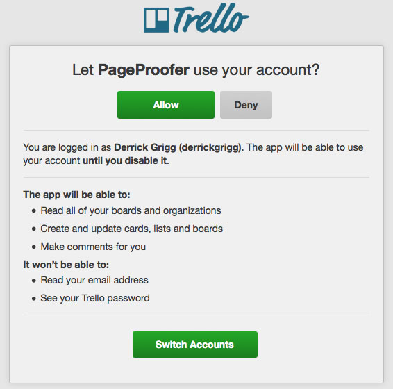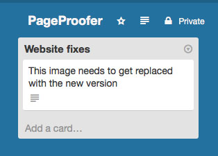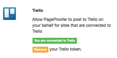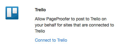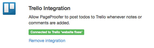If your team uses Trello for project management you can easily connect PageProofer to your Trello project/board. As notes and comments are added in PageProofer, cards will be added and updated in Trello with links back to the specific page and note where the PageProofer note was added.